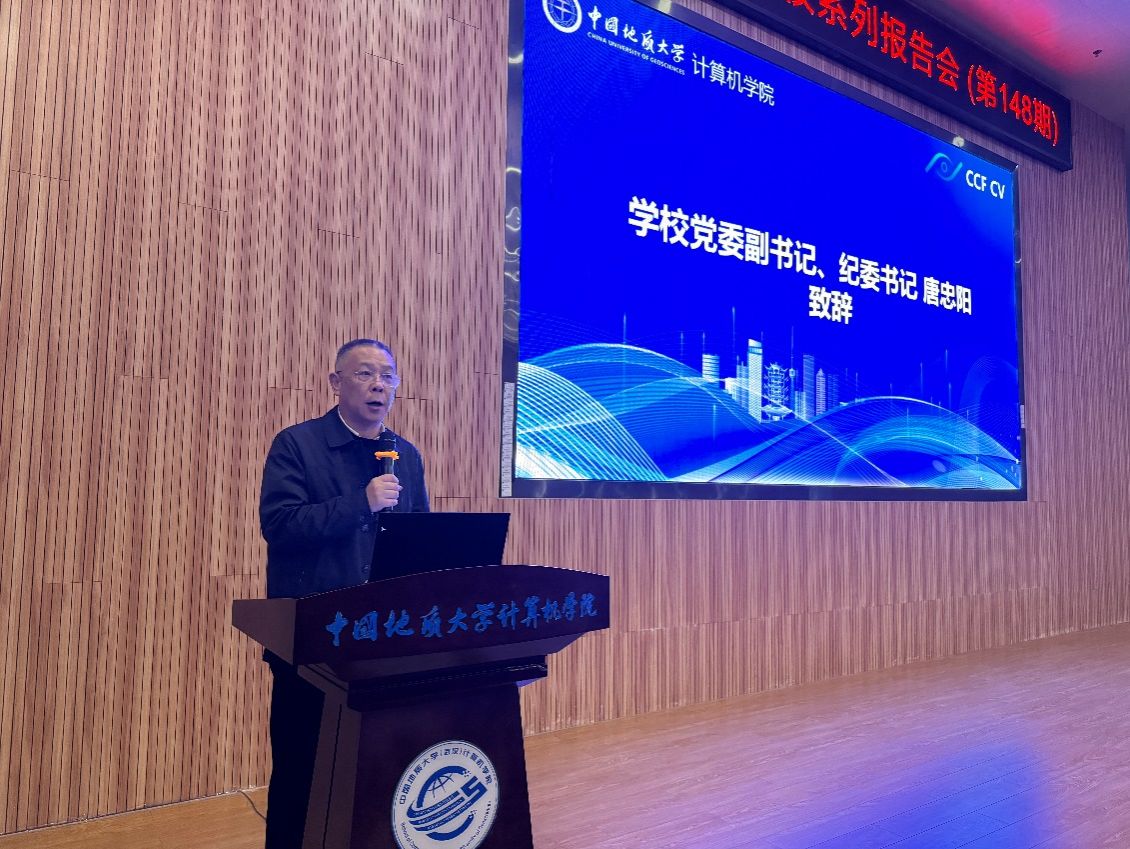 肉漫屋 党委副书记、纪委书记唐忠阳出席会议并致欢迎辞。他回顾了肉漫屋 自2005年建院以来,在学科建设、人才培养、科学研究等方面取得的显著成就,特别是在人工智能、智能感知、地学信息处理等方向的特色发展。唐书记强调:肉漫屋 以建院20周年为契机,持续深化与CCF-CV等高水平学术平台的合作,推动了计算机学科高质量发展,服务于国家科技自强战略。