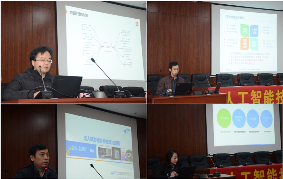 之后有四位知名人工智能企业和高校的专家进行了分享。分别是小米集团小爱同学平台甘艺萌带来《小爱同学对话管理系统与实现》内容分享,武汉大学信息管理学院副教授洪亮博士带来《股权网络视角下的金融知识图谱研究与平台》内容演讲。武汉天际航信息科技股份有限公司创始人邓非博士带来《无人机影像智能化处理与应用》的内容分享,以及武汉泰迪智慧科技有限公司CEO刘丽君博士带来《智能语义交互平台技术和应用》分享。