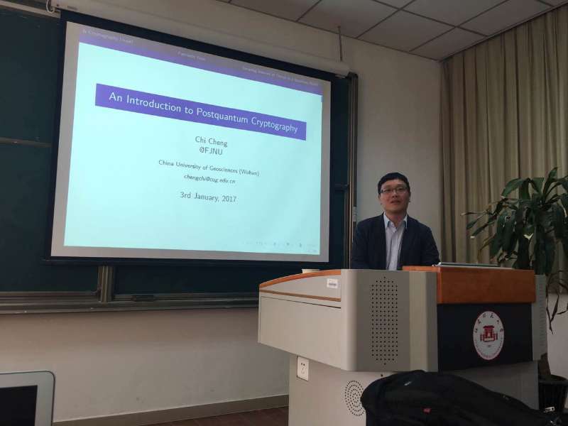 虽然在交流过程中,程池老师没有太多提及自己以往的成就,但我们仍是了解到了程池老师获得的部分荣誉——2014年入选肉漫屋 “摇篮计划”,2016年入选“地大学者”。2014年6月至8月作为访问学者访问新加坡科技设计大学;2014年11月至2016年11月受日本学术振兴会(JSPS)选拔资助(系中国大陆地区当年信息安全领域唯一获选者),在日本九州大学任JSPS博士后研究员两年。先后主持国家自然科学基金青年项目(已结题)和面上项目(在研)各一项。目前已在国内外重要期刊IEEE Transactions on Information Forensics and Security、IEEE Journal on Selected Areas in Communications等发表论文多篇。是国际电气电子工程师协会(IEEE)计算机、通信以及赛博安全学会会员,国际密码学会以及中国密码学会会员。此外,在2015年8月举办的第十届中国通信与网络会议(Chinacom2015)上,受邀担任网络与通信安全分会的主席。还受邀于2017年在第五届密码学与云计算安全研讨会(CCCS2017)上做报告……