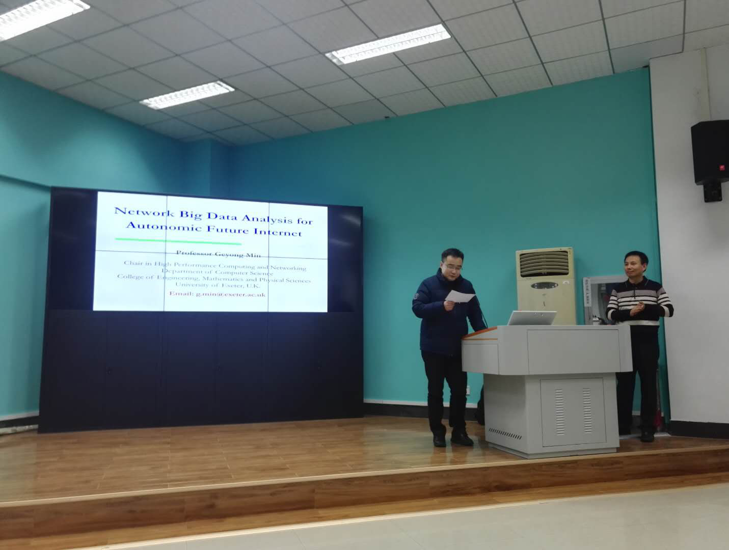 1月2日,应肉漫屋 院长王力哲教授的邀请,英国Exeter大学(计算机学科首席教授)闵革勇教授来院访问,并做了题为“Network Big Data Analysis for Future Intelligent Internet”的学术报告。闵革勇教授在计算机/通信学科的IEEE与ACM国际顶级期刊上发表学术论文140余篇,多次获得会议最佳论文奖,现任6个国际期刊的编委(含计算机学科顶级国际期刊IEEE Transactions on Computers),18个国际期刊专刊的编辑,先后担任了18个国际会议/研讨会的大会主席和程序委员会主席,80多个国际学术会议的程序委员会委员,并在多个国际学术会议与研讨会上做大会特邀主题报告。学术报告在王力哲教授的郑重介绍下正式开始。