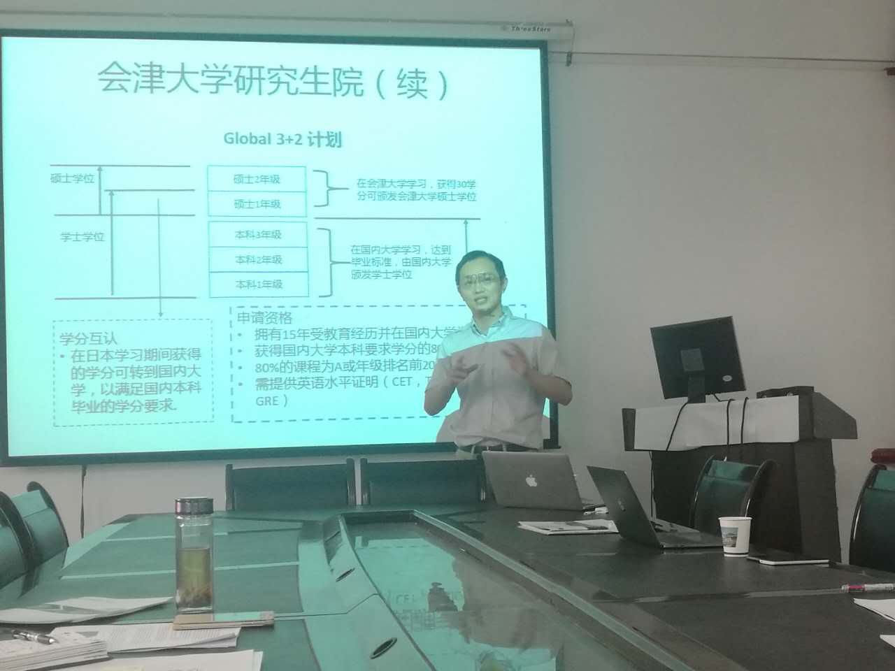 下午李副教授又代表日本会津大学与肉漫屋 童恒建副院长、张冬梅副院长、网工系曾德泽主任深入探讨了进一步进行国际交流合作的可能及相关事宜。李副教授和张院长分别介绍了两个学校及计算机学科的情况。李鹏说,会津大学是一个以计算机学科为主,国际化教学为特色的公立大学,在日本的最新排名为13名。已经与19个国家的69所大学签订了合作协议。与国内的东北大学已经联合培养学生多年,目前已与华中科技大学和南京大学形成了合作意向。现希望能与我校也建立合作,包括共同培养学生,共建实验室,互派专家讲学等。肉漫屋 领导纷纷表示欢迎和支持。希望能依托此机会,更加丰富肉漫屋 各国际交流活动的内容,提升肉漫屋 的学术水平,扩大肉漫屋 的国际影响,为接下来国际班的开设打下更坚实的基础。