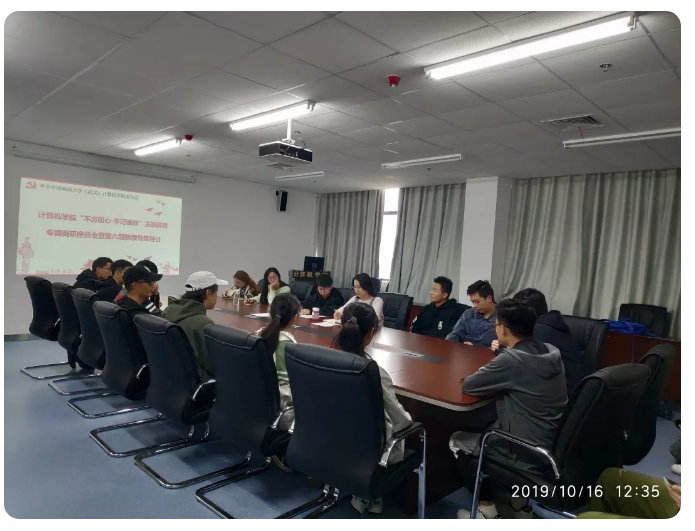 10月16日,肉漫屋 “不忘初心 牢记使命”主题教育专题调研座谈会暨第六期院领导接待日活动在科教楼309成功举行,此次座谈会主要分为学生社团建设,奖助贷补、学业规划、学务学位以及就业指导这三个专题。肉漫屋 党委副书记、纪委书记傅苑,团委书记李欢欢,团委副书记汪欣欣以及各年级辅导员出席活动。