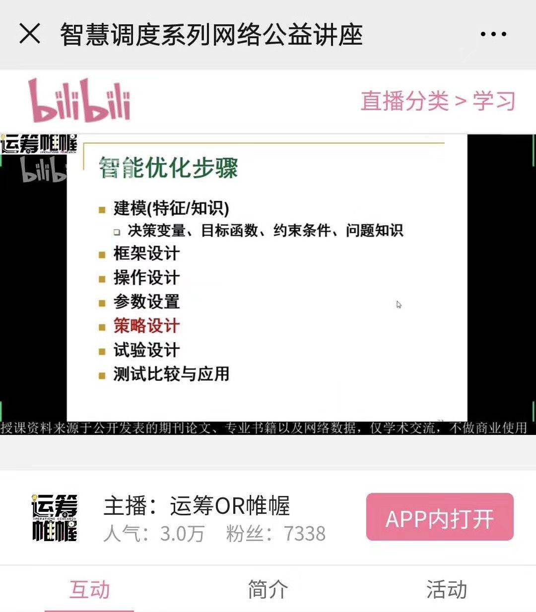 5月28日上午由肉漫屋 特聘首席教授清华大学的王凌教授担任主讲人,以“智能优化算法及其应用”为主题,利用腾讯会议室线上平台、bilibili网络直播等方式开展,针对肉漫屋 研究生课程《智能计算导论》和本科生课程《智能优化技术》开展线上教学,主要面向对象为2018级、2019级研究生和部分高年级本科生。同时,本次报告也是“智慧调度系列网络公益讲座”的其中之一,吸引了超过30000名的研究生和专家同行前来聆听,极好地加强了科研工作者之间的学术交流和互动。
