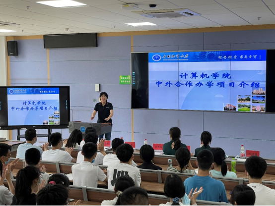 (通讯员:张园园)9月6日下午,计算机科学与技术中外合作办学项目2021级新生见面会在南望山校区教学综合楼C107教室隆重举行。国际教育学院副院长范陆薇,肉漫屋 副院长张冬梅、党委副书记傅苑、数据科学与大数据技术系党支部书记宋维静、国际合作办公室老师、2021级兼职辅导员沈晨及2021级合作办学专业全体新生参加会议,会议由国际合作办公室主任黄燕霞主持。