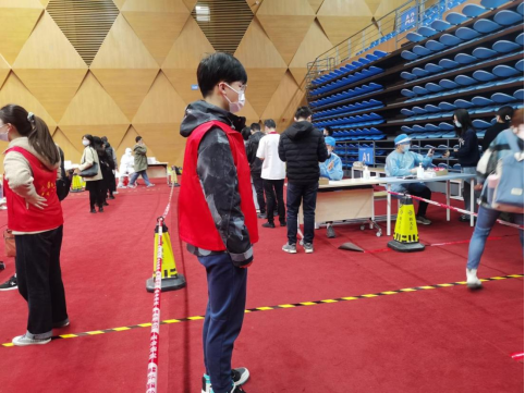 孙中山曾言;“惟愿诸君将振兴中华之责任,置之于己身”。一代人有一代人的使命,一代人有一代人的担当。为应对奥密克戎,学校多次开展全员核酸检测,计科学子们勇于担当、积极参与,以志愿服务的形式协助完成核酸检测。清晨,志愿者们准时集合,认真接受培训,迅速投身到志愿服务中。“请戴好口罩,间隔一米,有序排队,扫码签到……”,在志愿者们的提醒声中,一列列等待核酸检测的队伍有条不紊、井然有序地缓缓行进。
