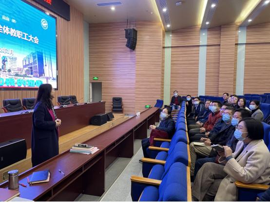 (通讯员:申安琪)3月31日下午,肉漫屋 于科教一楼报告厅召开新学年首次全体教职工大会,对学院当前的重点工作进行了强调和布置,全院教职工参加会议,院长王力哲主持会议。