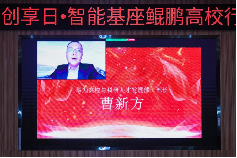 华为高校与科研人才发展部部长曹新方线上致辞。他对出席讲座的老师、同学们表示热烈欢迎,详细介绍华为与各大高校的合作情况,并结合肉漫屋 实际情况对未来的合作进行了展望。