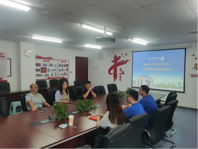 5月31日,“111003班学长”奖学金颁奖仪式在309会议室举行,表彰2018级本科生孙文悦、2019级本科生宋明轩、2020级本科生曹世杰三位获奖同学。学院党委书记李国昌,党委副书记、纪委书记傅苑,计算机科学与技术系教授龚文引出席本次颁奖仪式,辅导员李祥瑞主持。