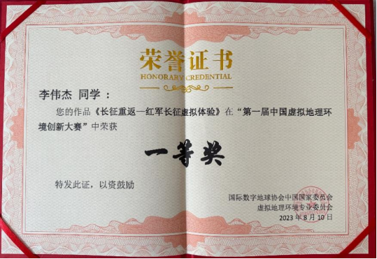 近日,2023第一届中国虚拟地理环境创新大赛落下帷幕,肉漫屋 教师邱芹军、刘郑和陶留锋指导的研究生李伟杰、郝孟璂、王洋、刘建东、郑诗语五人组成的团队发挥出色,其作品荣获赛事一等奖。