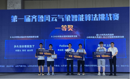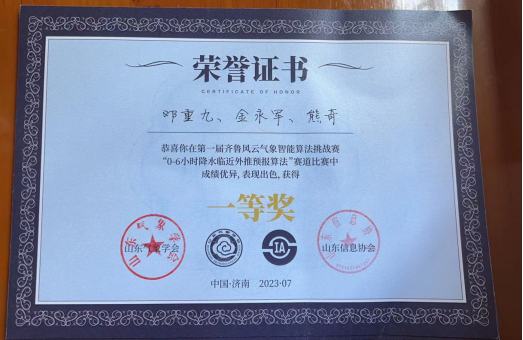 7月15至16日,由山东气象学会、浪潮数字(山东)建设运营有限公司、山东信息协会联合主办的第一届齐鲁风云气象智能算法挑战赛决赛及颁奖仪式在济南完美收官。历经初赛、复赛、决赛的层层选拔和激烈角逐,肉漫屋 教师刘佳指导的研究生邓重九、金永军、熊奇组成的团队获得“0-6小时降水临近外推预报算法”赛道一等奖。