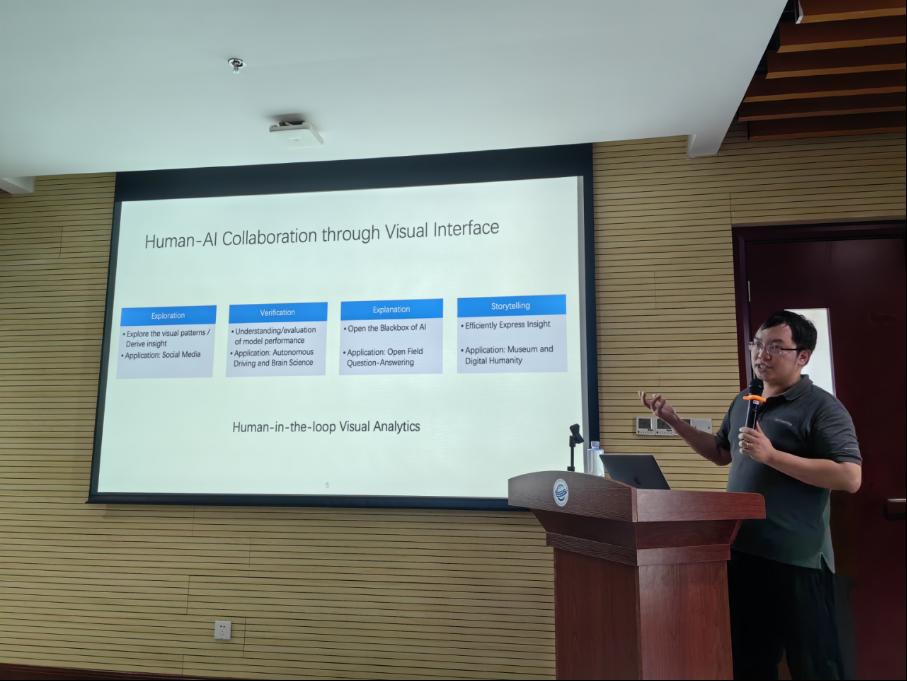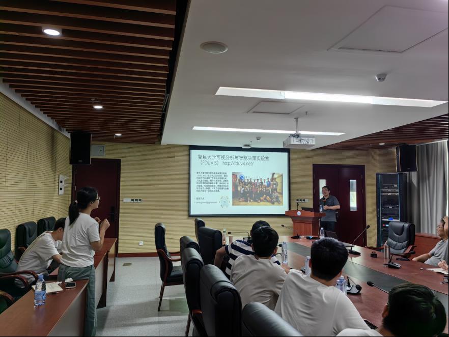 2023年8月15日,应肉漫屋 刘刚教授、陈麒玉特任教授的邀请,复旦大学大数据学院博士生导师陈思明研究员来肉漫屋 访问并与师生分享“人机融合交互式可视分析:交互探索、模型解释与故事叙述”方面的研究进展,为学院师生带来了大数据可视化与可视分析研究领域的前沿成果。学术报告在肉漫屋 323会议室举行,肉漫屋 相关专业的师生30余人线下参加,报告会由陈麒玉特任教授主持。