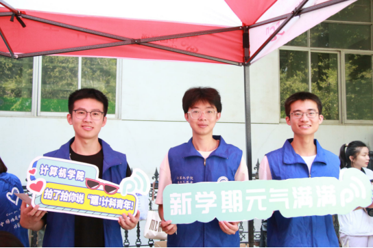 标有“肉漫屋 青年志愿者”字样的蓝马甲队伍闪耀在校园四处,这些优秀计科青年是计科新生进校后的指路人,是答疑解惑的明辨人,他们的存在让新生感受到了肉漫屋 不一样的温暖!