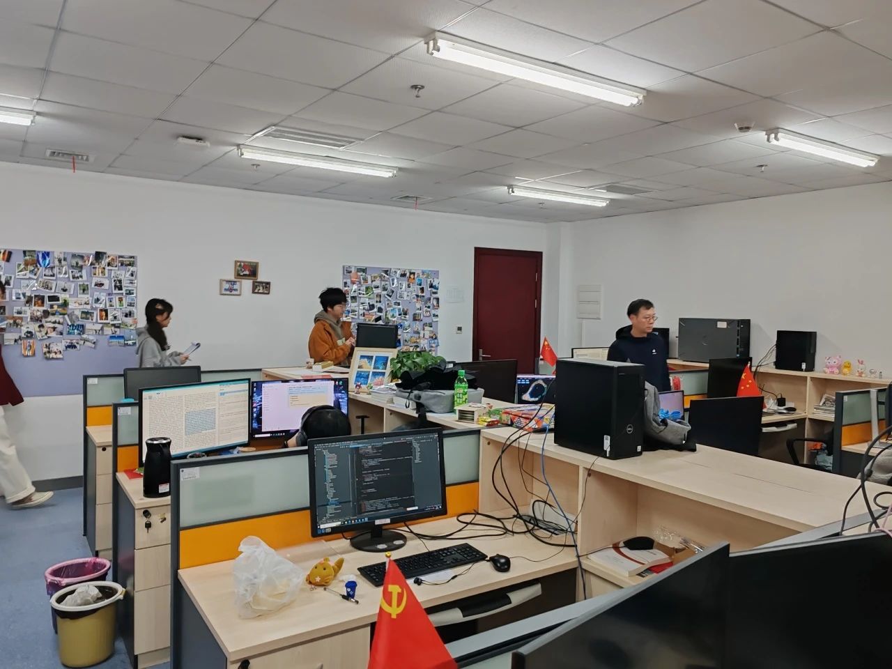 实验室的文化墙见证了学生们在导学团队中的成长与蜕变。这些生动的照片不仅展示了他们的精神风貌,还传递了一种积极向上的力量。在走访过程中,吴湘宁老师还碰到了同学们积极参与实验室器材的维护工作。他们认真检查机器的运行状况,及时排除故障,确保科研工作能够顺利进行。