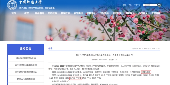 近日,学校发布了《2022-2023年度本科教育教学先进集体、先进个人评选结果公示》,肉漫屋 再次获评“2022-2023年度本科教育教学先进集体”,这也是肉漫屋 连续两次获此殊荣。此外,由于在教学改革、教师教学发展领域的卓越工作,陈云亮副院长、王太茂老师获评“2022-2023年度本科教育教学先进个人”。