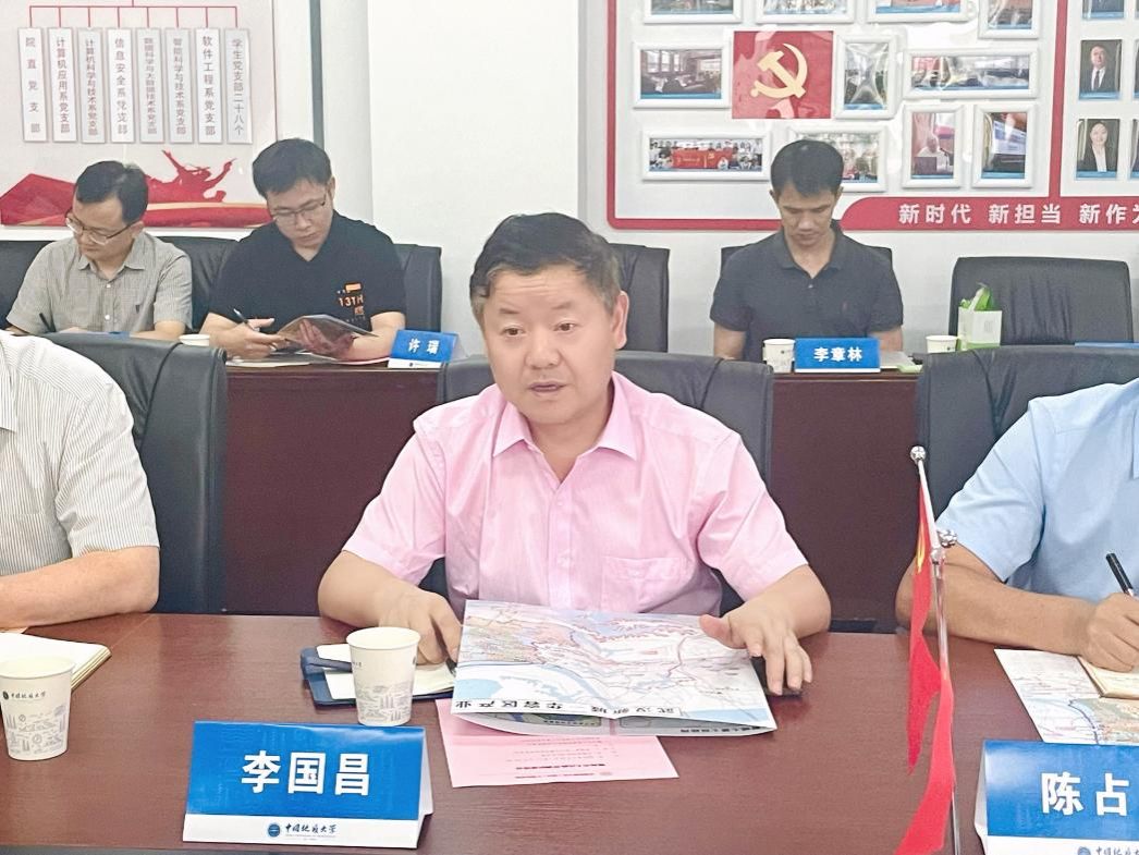 任蔚对学院的热情接待表达感谢,并介绍了鄂州市人民政府在武汉华容区建设武汉新城与光谷数字信息产业园招商的进度。表达了未来与肉漫屋 的合作意向,表示这次调研旨在了解学院学科建设,希望可以运用计算机专业相关数字环保、数字经济等方式推进城区建设。