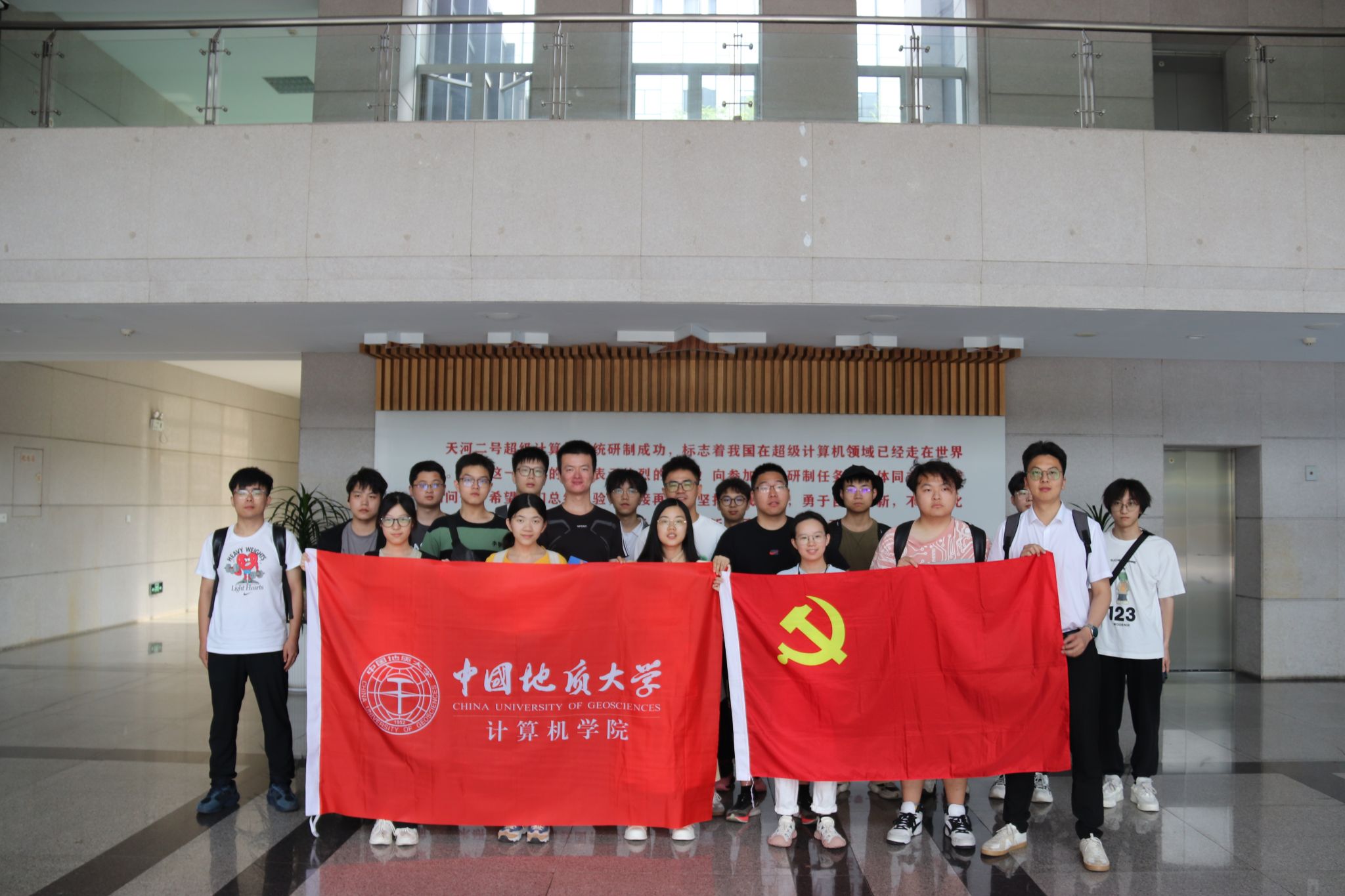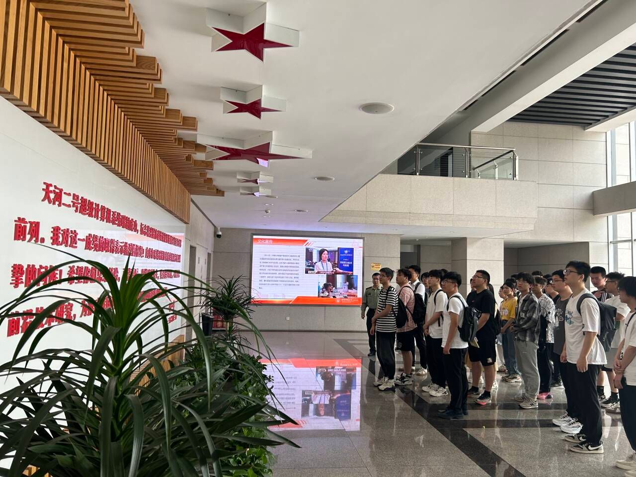 18日上午,国防科技大学贾孟涵老师对学院一行表示欢迎。随后一同参观国防科技大学肉漫屋 院士墙和天河二号超级计算中心,介绍国防科技大学发展历程及重大成果。通过学习超级计算机的工作原理、应用场景以及国际地位,同学们对数据处理和计算机科学与技术的认识更加清晰,同学们纷纷表示将个人梦想融入到科技报国的伟大事业中。