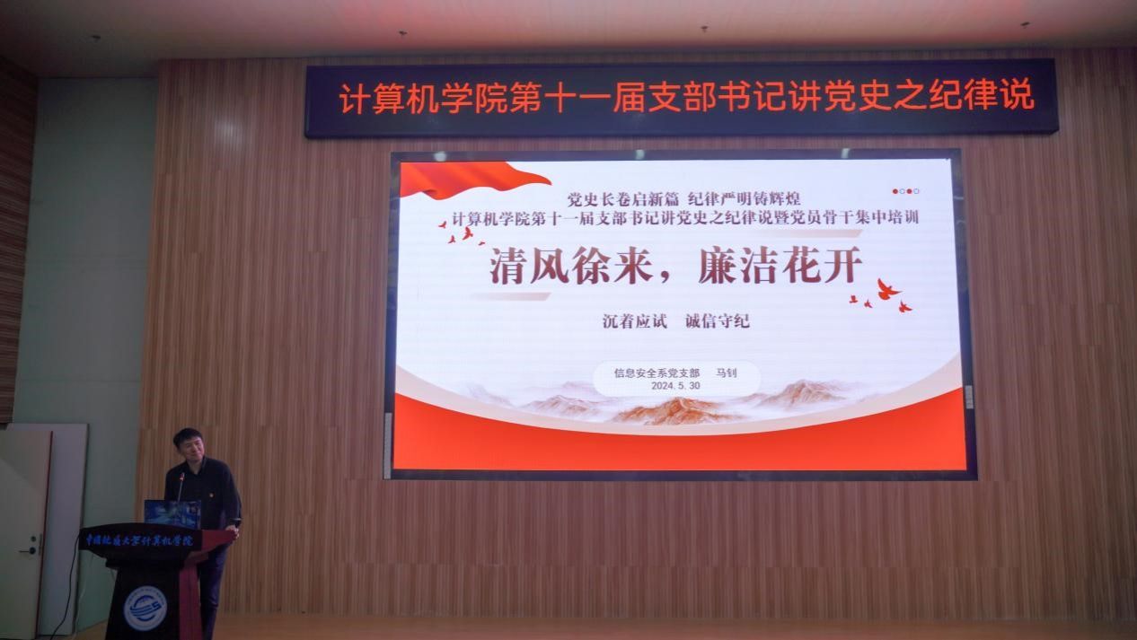 校党委副书记、纪委书记唐忠阳高度肯定了肉漫屋 “第十一届支部书记讲党史之纪律说”活动。他说,本次活动聚焦党纪学习教育主题,参加对象不仅继续覆盖了全院师生党团支部,还将范围扩展到经管学院、校友群体和信息类头部企业,学院党委书记也亲自示范,主题鲜明,形式新颖,内容丰富,实现了党团共建、师生校友互育和院际、院企联学的生动局面,值得借鉴。他强调指出,开展党纪学习教育是落实全面从严治党要求、加强党的纪律建设的基础性、经常性工作。广大党员要提高政治站位,深化思想认识,深刻领会开展党纪学习教育的重要意义;要切实履行好纪律教育主体责任,准确把握党纪学习教育的目标要求;要加强组织组织领导,抓好统筹实施,推动党纪学习教育走深走实;要坚持问题导向,把握学习的实效性。最后,唐忠阳寄语在场的师生党员,要时刻以党纪国法约束言行举止,内化于心、外化于行,坚定理想信念,严守党的纪律,坚定不移地听党话、跟党走,做党的事业的合格接班人。