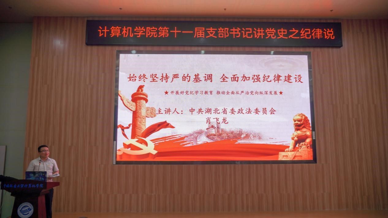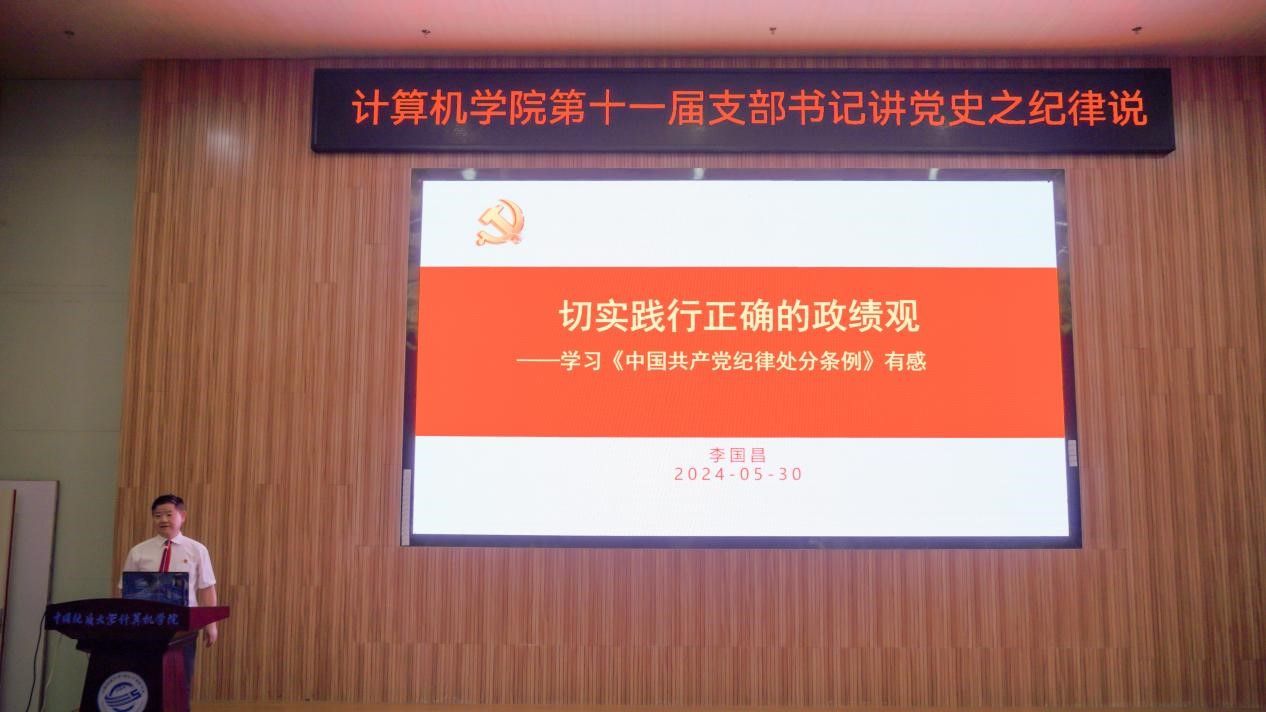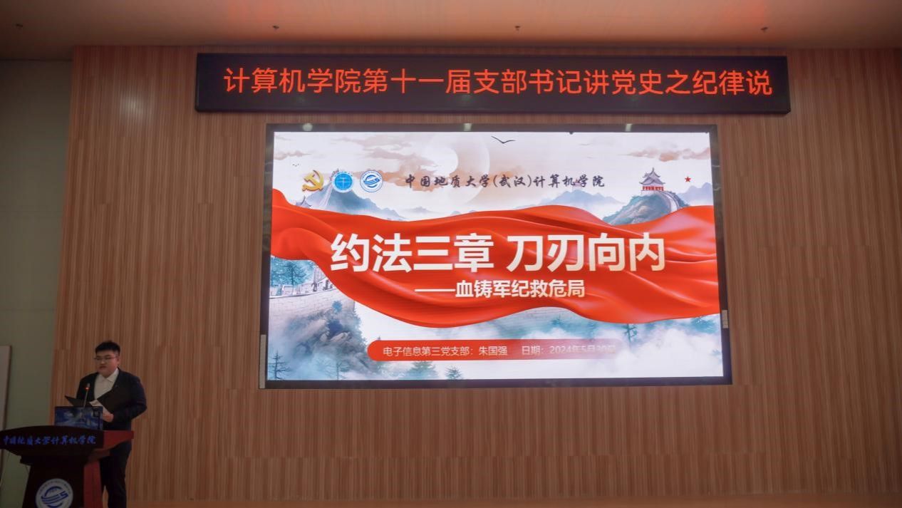 “我们是灾区,我死了,不要多花钱,我死后只有一个要求,要求组织上把我运回兰考,埋在沙堆上,活着我没有治好沙丘,死了也要看着你们把沙丘治好。”......舞台上,肉漫屋 空间信息工程党支部和经济管理学院生态文明研究生党支部的党员代表们生动演绎着《焦裕禄》,他们以一场独具特色的话剧将现场气氛推向了高潮,生动诠释了“亲民爱民、艰苦奋斗、科学求实、迎难而上、无私奉献”的“焦裕禄精神”。5月30日下午,肉漫屋 在学院126报告厅举办第十一届支部书记讲党史之纪律说暨党员骨干集中培训活动。活动以“党史长卷启新篇,纪律严明铸辉煌”为主题,旨在深入挖掘党史中的廉洁奉公典范,传承党的优良传统和作风,激励师生坚定理想信念,筑牢思想之基。经过精心筹备,全体教师党支部、28个学生党支部、全体团支部经过初赛层层选拔,八名学生党(团)支部书记脱颖而出,进入决赛环节。同时,获奖的教师党支部书记代表马钊老师、校友代表肖飞龙以及肉漫屋 党委书记李国昌讲授了精彩的示范党课。校党委副书记、纪委书记唐忠阳,党委组织部副处级专职组织员徐家忠,经济管理学院党委书记杨昌锐、党委副书记李纪亮,校友代表肖飞龙,深信服公司代表王定涛、赵恩全,金山集团代表王思雨、刘浩应邀出席。肉漫屋 党委书记李国昌、党委副书记林小艳、辅导员谭文博和进入复赛的学生党、团支部代表现场观摩。学生党建办公室叶岭岚担任活动主持。
