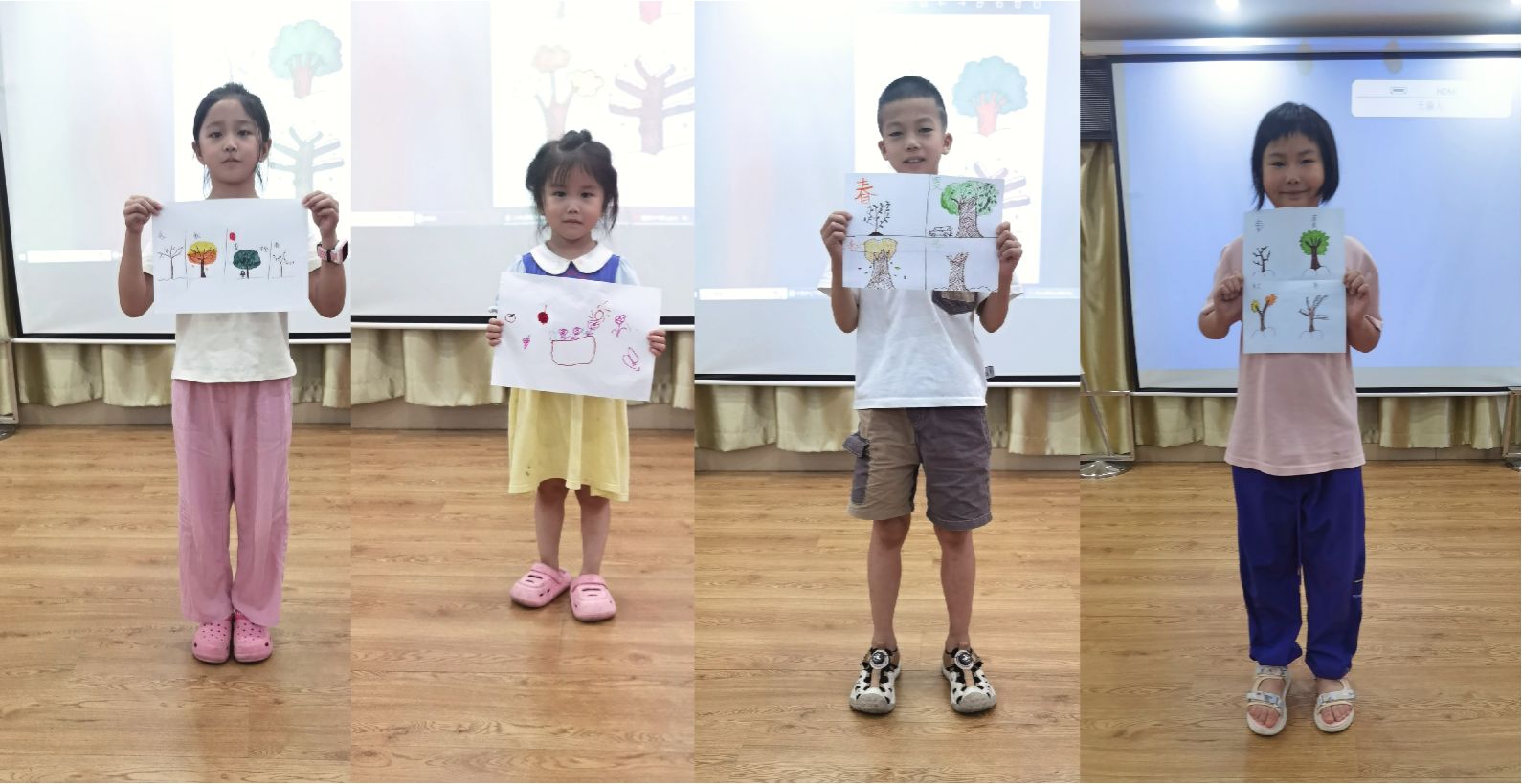 此外,为了让小朋友们更深入触摸植物的奥秘,团队成员运用“看图猜意”和“绘出一年四季”两个环节,既能提升小朋友们的论述能力和逻辑思维,也让我们更直观地看到小朋友们心中植物一年四季的更迭变化,真正触摸到小朋友们的小小天地。