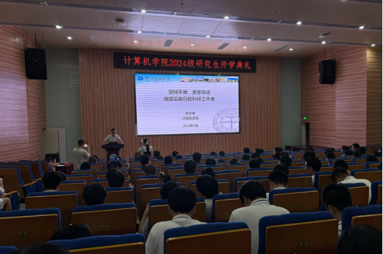 随后,张洪艳深情地与同学们分享了他从青涩的本科时代,逐渐成长为博士,再到在智能信息处理领域执教并不断探索的漫长旅程。他指出,科研的道路不仅仅依赖于激情与热忱,更多的是在无数次的试验与失败中,坚守初心,保持耐心,直至在逆境中窥见成功的曙光。在这个过程中,我们必须确保自己一直走在一条正确的道路上。他用亲身经验告诉新生们:在研究生的学习旅程中,要勇于面对失败,用实际行动去探索未知,把握每一次学习和实践的机会,逐步过渡到一个成熟的研究者身份。他鼓励大家在科研的征途上,要有勇气面对困难,有毅力超越挑战,有决心追求真知。