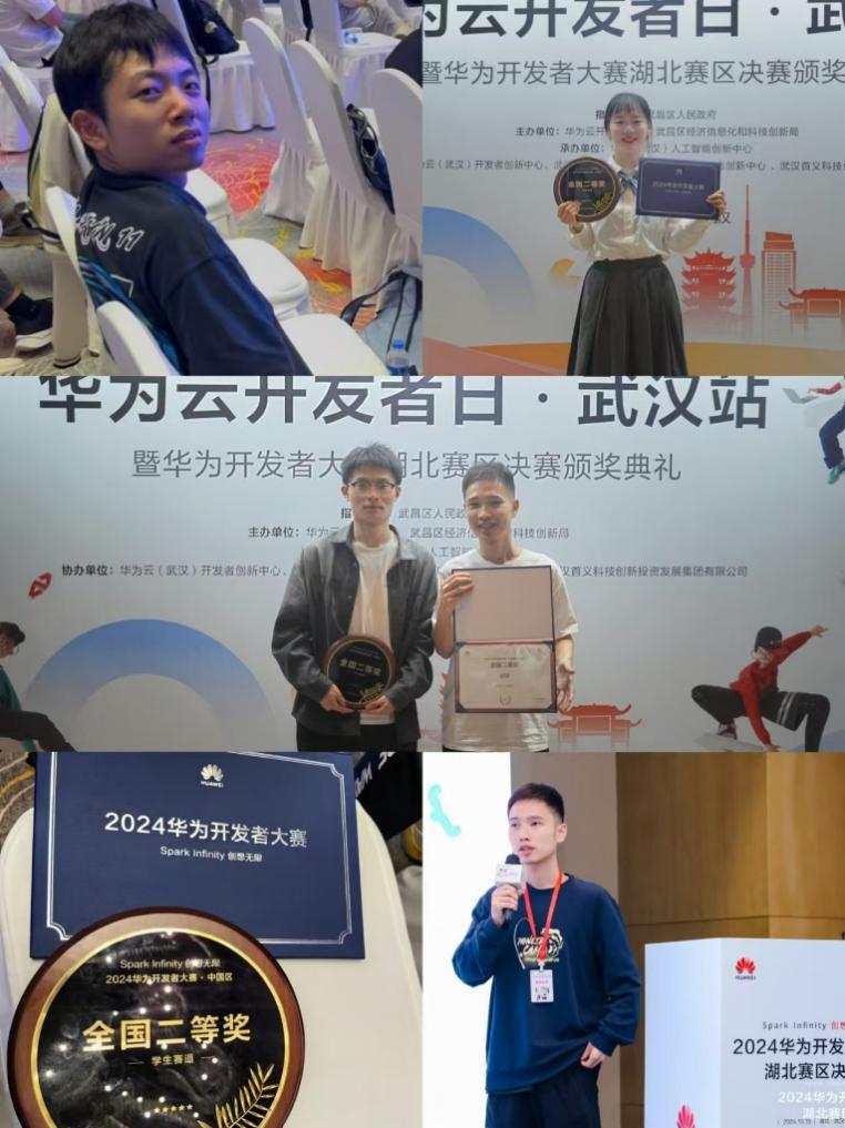 2024年10月15日,华为云开发者日·武汉站暨华为开发者大赛湖北赛区决赛颁奖典礼成功举办,肉漫屋 计算机科学与技术专业的李航、夏嘉键、余雅琼、吴家豪等四人组成的“还好队”,获得了华为开发者大赛学生赛道全国二等奖。