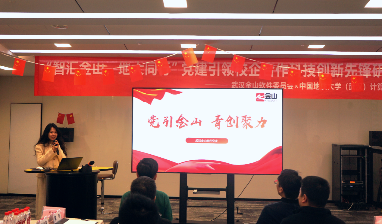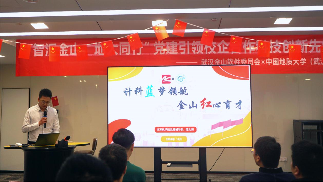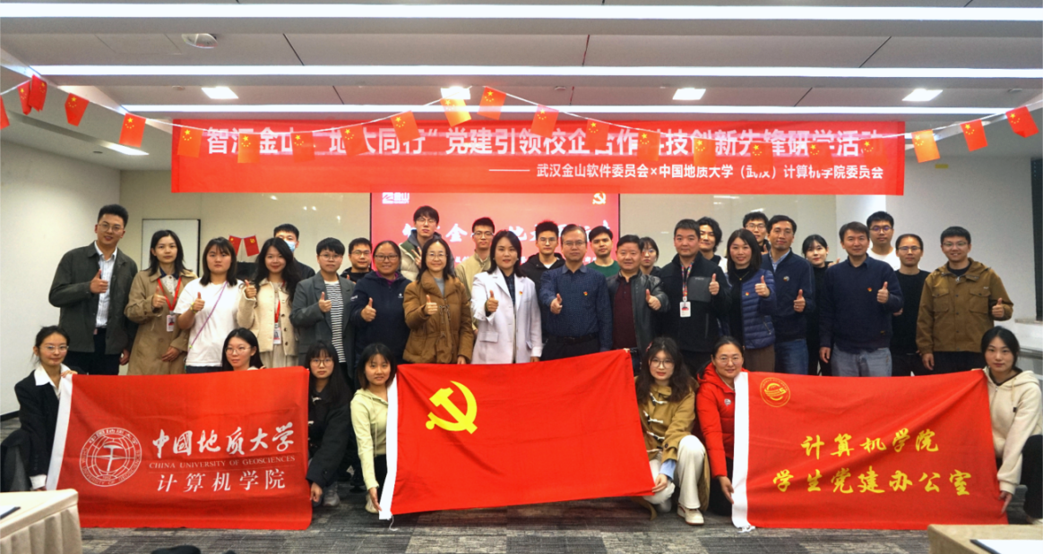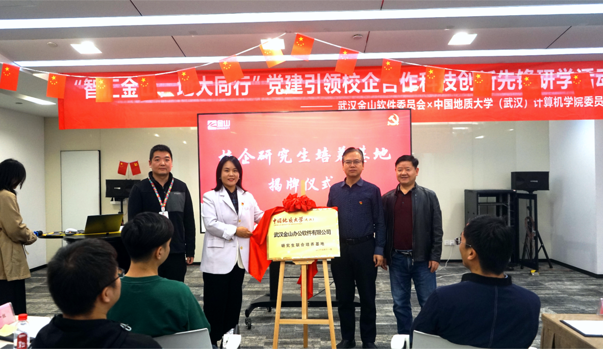 11月22日,院党委与武汉金山软件有限公司党委联合举办的 “智汇金山·地大同行”党建引领校企合作科技创新先锋研学行动暨研究生培养基地挂牌活动,在金山集团武汉总部举行。武汉金山软件党委书记张念、金山办公第三支部书记曹宗华及王思雨、刘浩、王佳慧、陈志增、赵志梦等职工党员,肉漫屋 党委研究生工作部部长许德华,肉漫屋 党委书记李国昌、党委副书记林小艳、教师党支部书记马钊、叶亚琴、武云、宋维静、孙琨、辅导员李欢欢、谭文博,以及部分学生党支部书记参加活动。