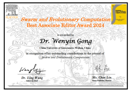 近日,肉漫屋 龚文引教授荣获中科院一区期刊《Swarm and Evolutionary Computation》2024年度最佳副编奖(Best Associate Editor Award),以表彰其对该期刊发展和群体进化计算领域研究的进步做出的杰出贡献。