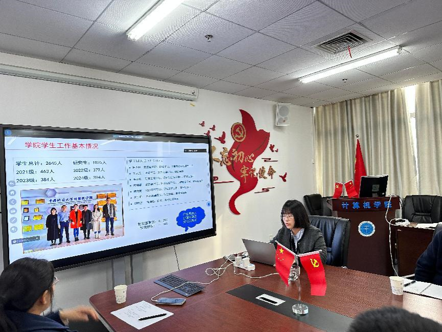 闫维蓉作学生安全稳定工作汇报。她介绍了学院学生中存在的一些不稳定因素,并汇报了学院学生今年来在电信诈骗、交通安全、意识形态等方面的特殊情况。此外,重点围绕近期心理普查和访谈结果,给老师们详细讲解了与学生谈心谈话的技巧,提醒老师们加强学生在校安全和心理健康的教育和引导。