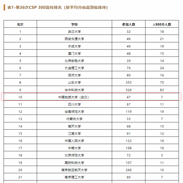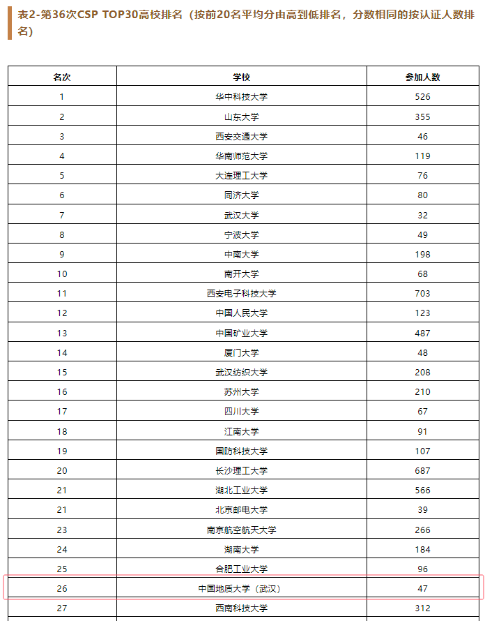 据悉,此次认证共有来自全国192个高校的8218人参加。肉漫屋 共47人参加认证考试,其中300分以上达7人(CSP总分500分)。CCF对参加人数大于等于30人且2人及以上认证成绩达300分的高校进行了平均分排名,肉漫屋 排名进入前十。此外,CCF对每所学校排名前20同学的成绩进行了平均分排名,产生了CSP TOP30高校,肉漫屋 排名第二十六。