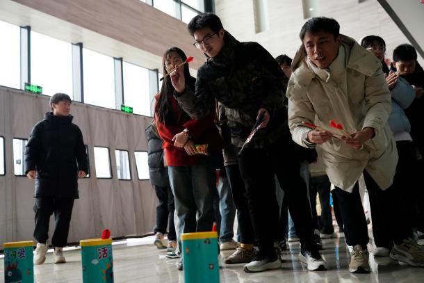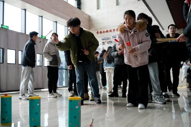 投壶雅趣,传承古韵!在欢声笑语中,投壶游戏正式开始。参与者手持竹箭,站在指定线后,屏气凝神,瞄准壶口,轻轻一投。每一次投掷,既考验参与者的手眼协调和定力,也蕴含着古人的智慧与礼仪。箭落壶中的清脆声响,瞬间引来围观者的喝彩与掌声,而未中壶口的箭也引发一阵善意的笑声,氛围热烈又温馨。