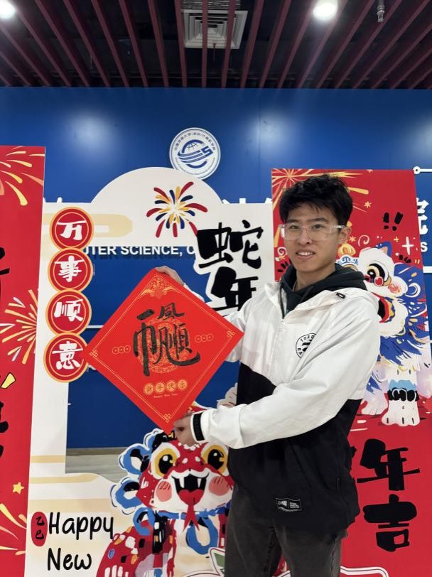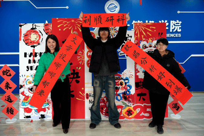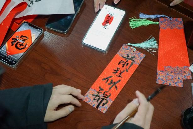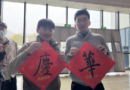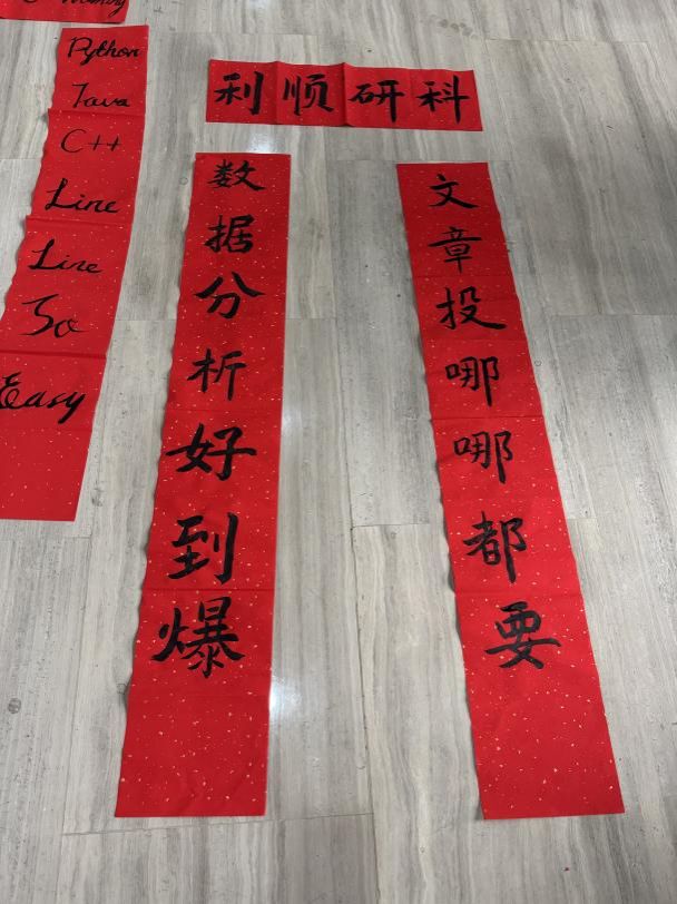 挥毫泼墨,体验书法艺术的妙趣横生! 活动现场,既可以获得书法“大咖”马浩正师兄定制的书法“墨宝”,也可以亲自感受行云流水般的肆意畅快,拿起毛笔,蘸墨挥写,感受笔尖与纸面的亲密接触,一笔一画都传递着书法的力量与美感。同学们也结合专业特色,写下计科人对于新年的美好祝福和祈愿!