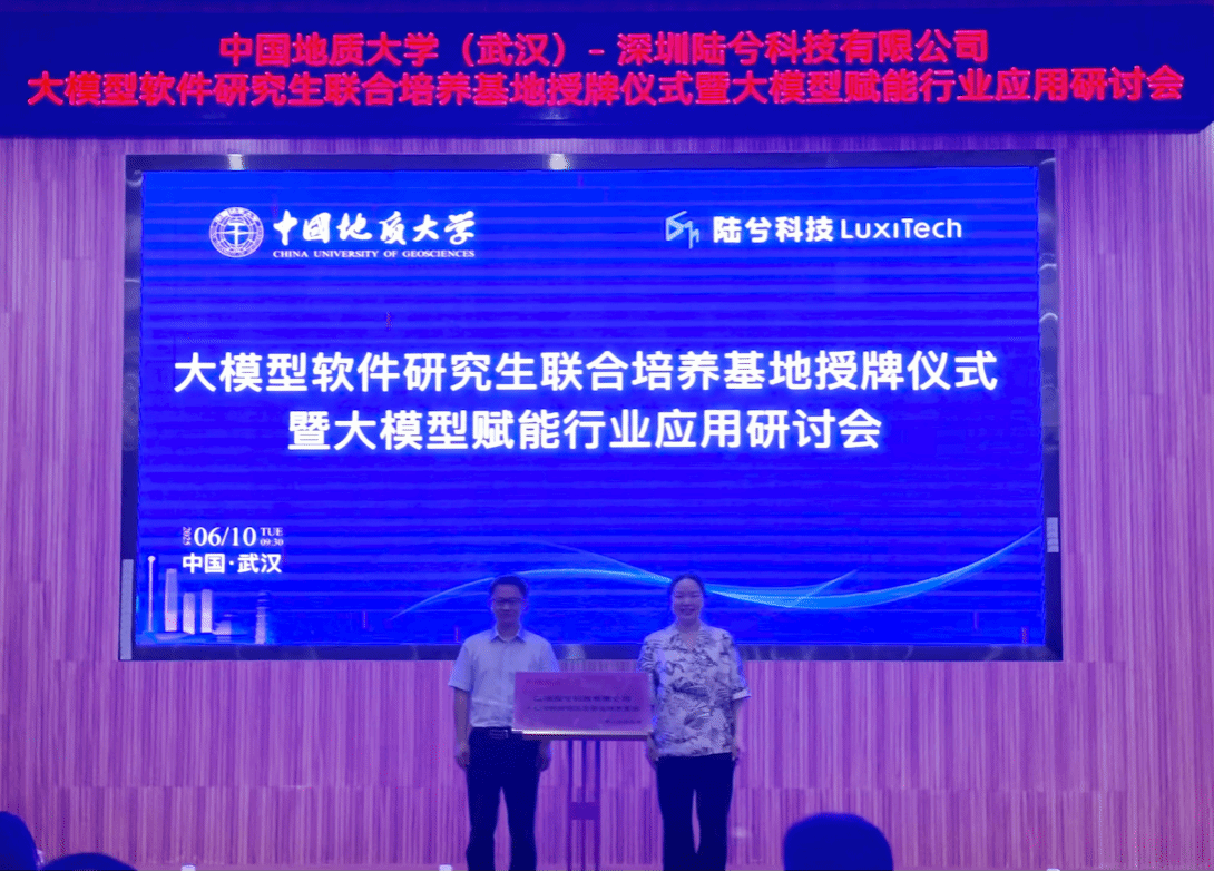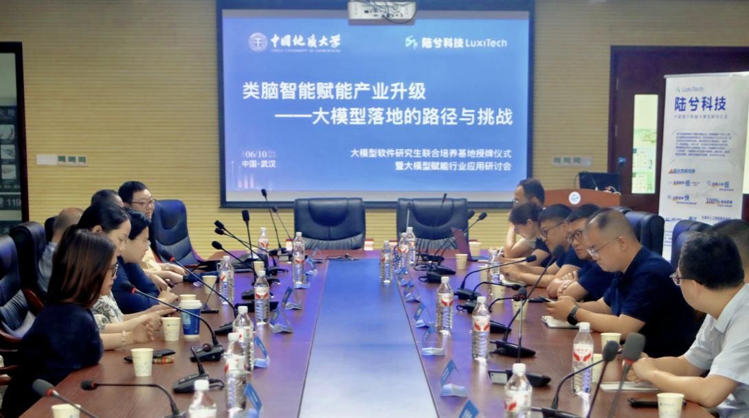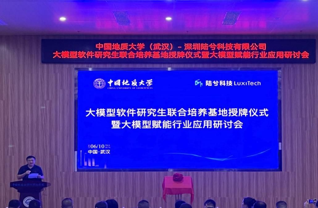 -深圳陆兮科技有限公司大模型软件研究生联合培养基地授牌仪式暨大模型赋能行业应用研讨会在学院126会议隆重举行。陆兮科技有限公司首席执行官汪博伦、首席技术官周芃博士、首席安全官黄彧博士等核心团队成员,水利部长江水利委员会、中国船舰研究设计中心、中国船舶重工集团公司第七一九所、上海华测导航技术股份有限公司、统信软件技术有限公司、湖北巴东地质灾害国家野外科学观测研究站、武汉通威电子有限公司和武汉市网络安全协会等有关单位代表,以及学校研究生院副院长易明、科学技术发展院副院长李鹏飞,我院副院长陈云亮,基地所依托研究生导学团队负责人尚建嘎教授、基地负责人赵一石等师生代表出席会议。陈云亮副院长主持会议。