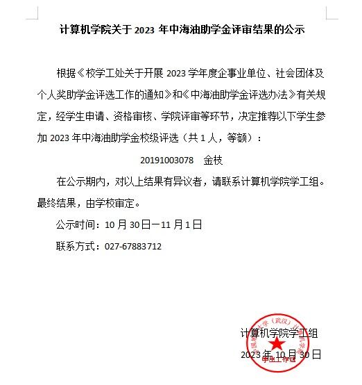 肉漫屋 关于2023年中海油助学金评审结果的公示