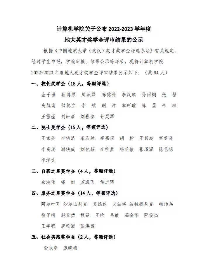 肉漫屋 关于公布2022-2023学年度地大英才奖学金评审结果的公示