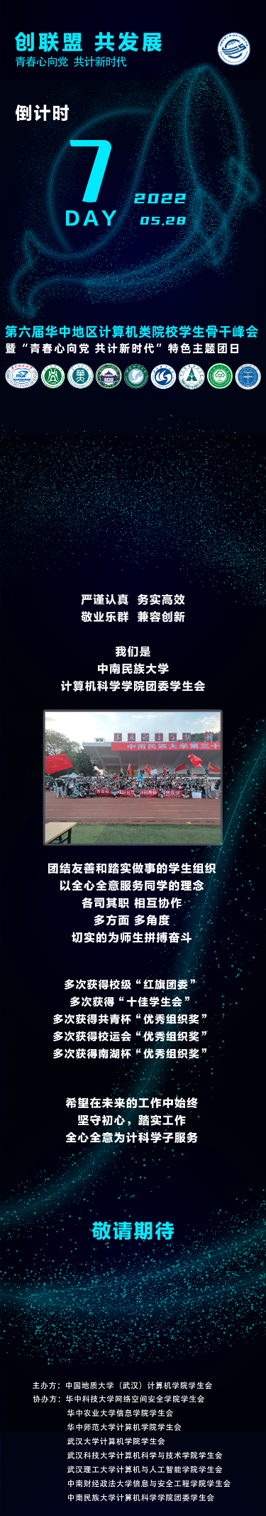 重磅 第六届华中地区计算机类院校学生骨干峰会倒计时7天!