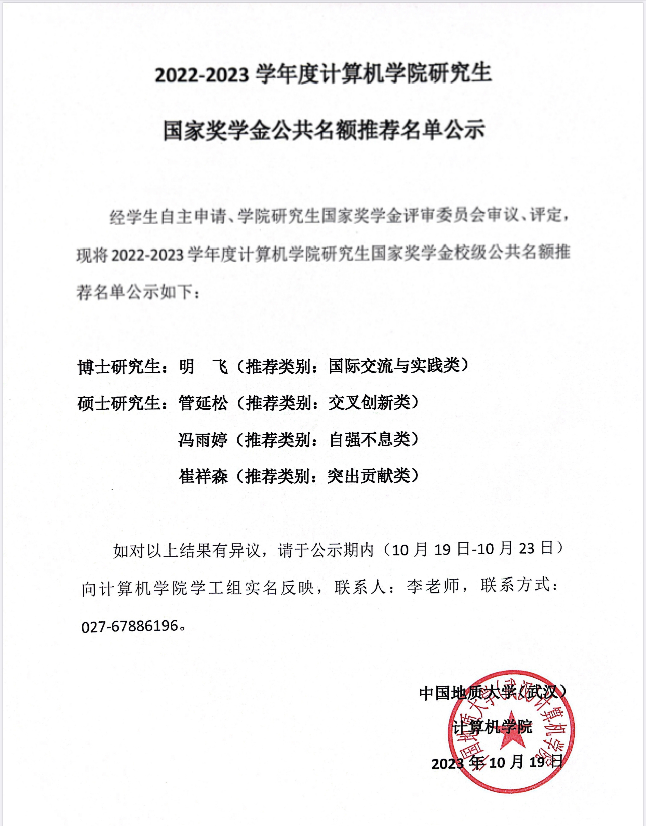 2022-2023学年肉漫屋 研究生国家奖学金公共名额推荐名单公示