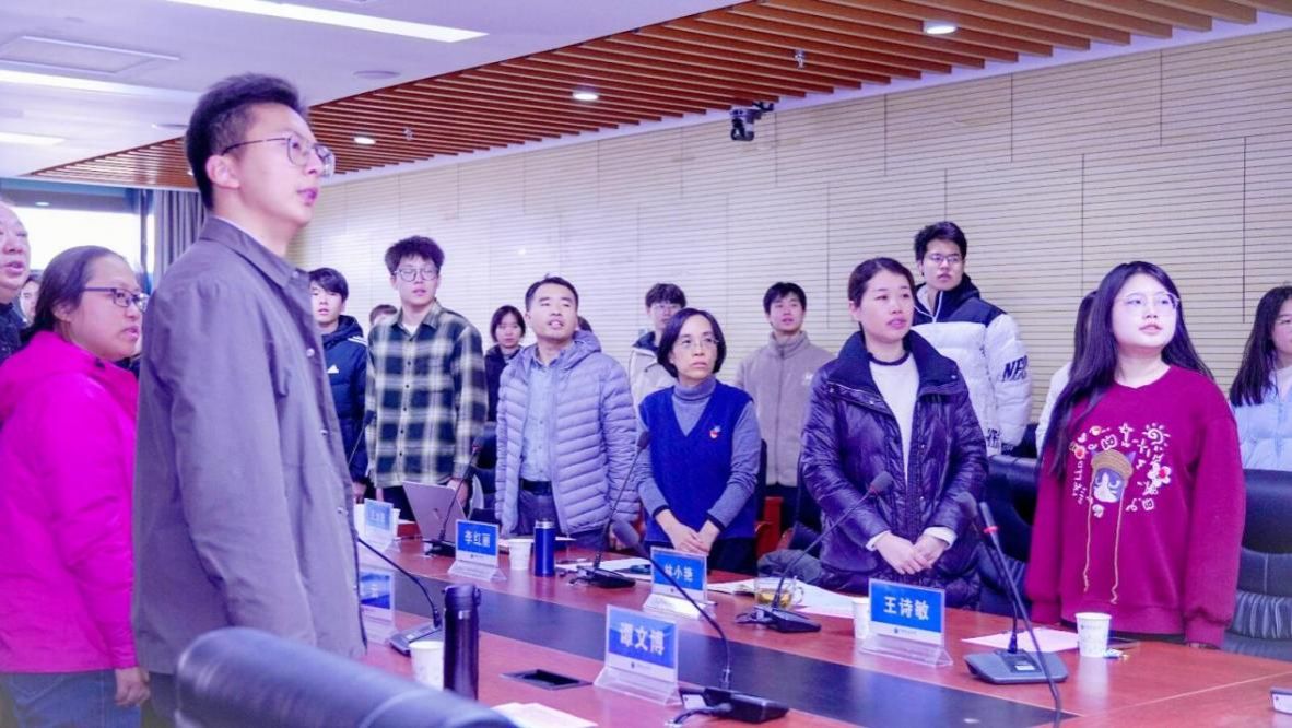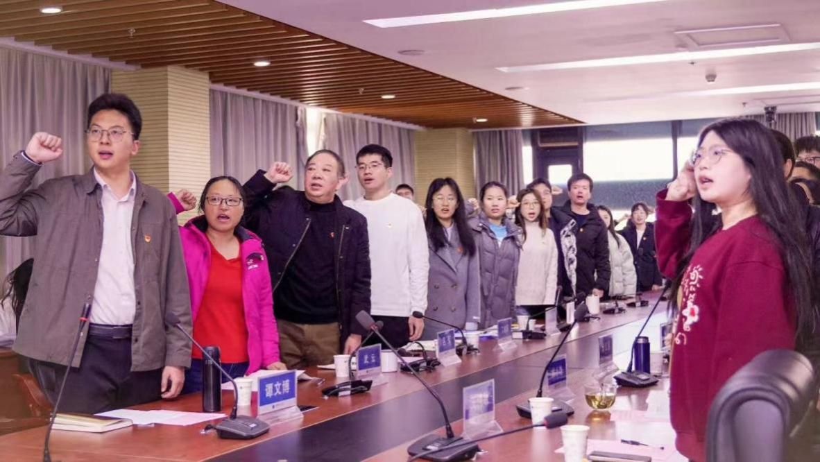 会议在庄严的国歌声中拉开帷幕。在林小艳的带领下,全体党员重温入党誓词。