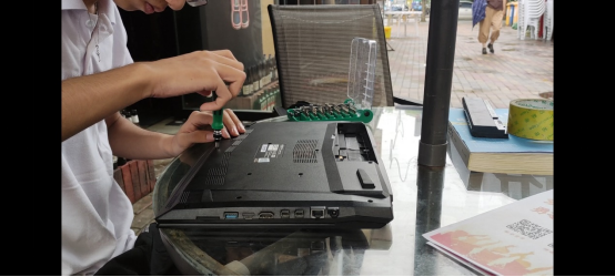 (通讯员:李子豪廖雪)为弘扬志愿服务精神,普及宣传计算机基础知识,2021年8月17日,在暑期社会实践活动开展的第二天,肉漫屋 “筑梦E路人”团队成员与当地机构进行协商,在取得同意后在所属社区内按疫情防控指示进行摆摊,开展了电脑维修志愿服务。