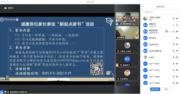 (通讯员:孙彦钦)为增进家长对学院工作的了解,进一步促进家校联动机制在育人体系中发挥有效作用,9月4日晚,肉漫屋 通过腾讯会议的形式召开了2021级新生家长会。院党委书记李国昌,党委副书记傅苑,副院长陈云亮,院团委书记李欢欢,学工组全体成员以及300余名新生家长参加此次会议,李欢欢担任主持。