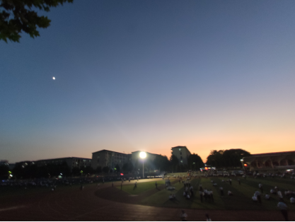 最后一天晚上7点,论文提交后,过地大天桥到西区走走,大一的新同学在军训,天空进入蓝调时间,三人大口呼吸着新鲜的空气。