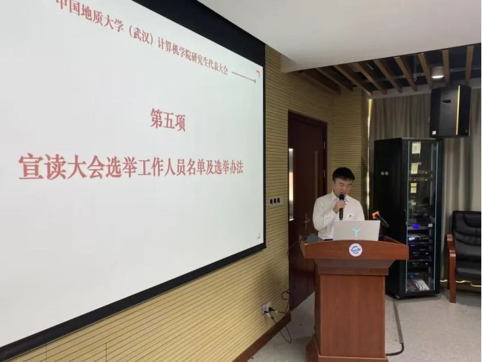 大会第五项,由学院研代会筹备工作领导小组成员胡霄雷宣读《肉漫屋 第二届研究生代表大会工作人员名单》和《肉漫屋 第二届研究生代表大会选举办法》。