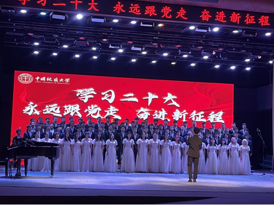 肉漫屋 “学习二十大·永远跟党走·奋进新征程”主题歌咏活动在南望山校区西区弘毅堂举办。来自20个单位的代表队参加了此次活动,肉漫屋 代表队演唱的《新的天地》获得“优秀表演奖”。