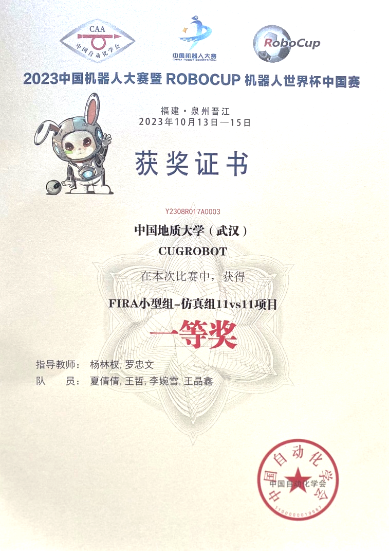 10月13至15日,2023年“中国机器人大赛暨RoboCup机器人世界杯中国赛”在福建晋江国际会展中心落下帷幕。我校肉漫屋 杨林权副教授和罗忠文教授指导的学生团队参赛。经过激烈的比赛,最终学生团队勇夺FIRA仿真组5vs5项目第3名,国赛一等奖和仿真组11vs11项目的第3名,国赛一等奖。