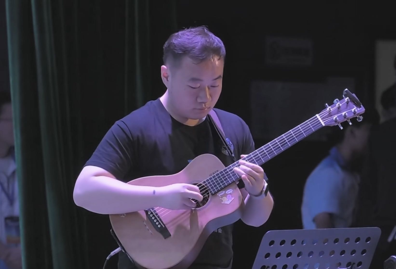 袁卓铭同学不仅在科研领域颇有所得,而且兴趣广泛,热衷于原创音乐的创作与编曲。从本科开始,便组建了武汉本土校园摇滚原创乐队,其中担任主音吉他手一职,曾受邀参加华中师范大学、武汉理工大学和武汉大学高校音乐节演出与LiveHouse演出,也曾代表肉漫屋 参加全国大学生音乐节,唱出属于CUGer的热血与青春。其乐队原创歌曲《我们终将再次相遇》更是收录为学校社团联合会的主题曲,在疫情爆发的艰难时期里,深深鼓舞着每个地大学子。