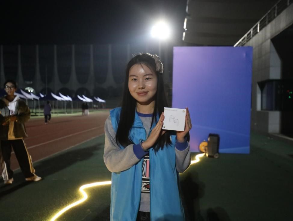 19:10,荧光夜跑正式开跑。参与者们沿着操场赛道奔跑,手中荧光手环的光芒与星光相互交织,勾勒出一道道绚丽的轨迹。不少同学打开步道乐跑APP或其他运动软件记录运动轨迹,在完成2km跑步指标后,满心期待地前往抽奖摊位,渴望赢取惊喜奖品。