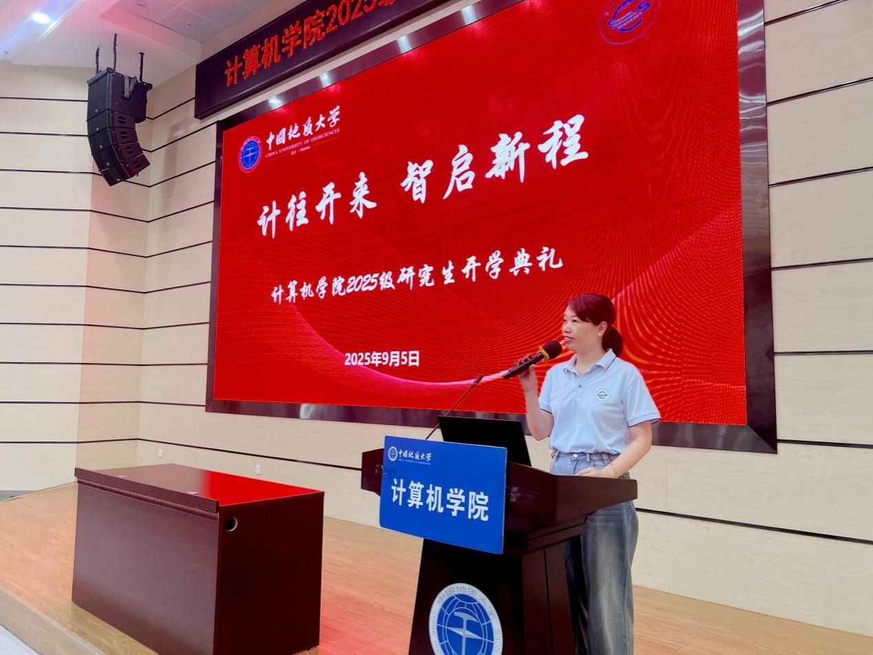 李国昌书记向来自全国各地的2025级研究生新生表示热烈欢迎。他介绍了地大的强大实力、优良传统及学院在学术资源、师资团队、研学空间等方面的成才支撑,希望同学们以“三定”、“三融”和“三保”为指导,顺利开启研究生阶段新篇章。“三定”是定目标,定方案,定规矩,要结合实际确定奋斗目标,为根据目标制定切实可行的实施方案,并定下规矩严格要求自己。“三融”是融人人关系,融人机关系,融人室关系,即要融洽与导师、同门、同学、室友的关系,尤其是建立与导师的融洽关系,正确处理个人与手机、电脑及网络的关系,不要被互联网和游戏影响;保持工位整洁,与室友们一道共同维护好实验室的安全、整洁与和谐。“三保”,即保证目标任务完成,保证遵规守纪,切实担负起对自己、家庭和学校的责任,做顶天立地的地大计科人。