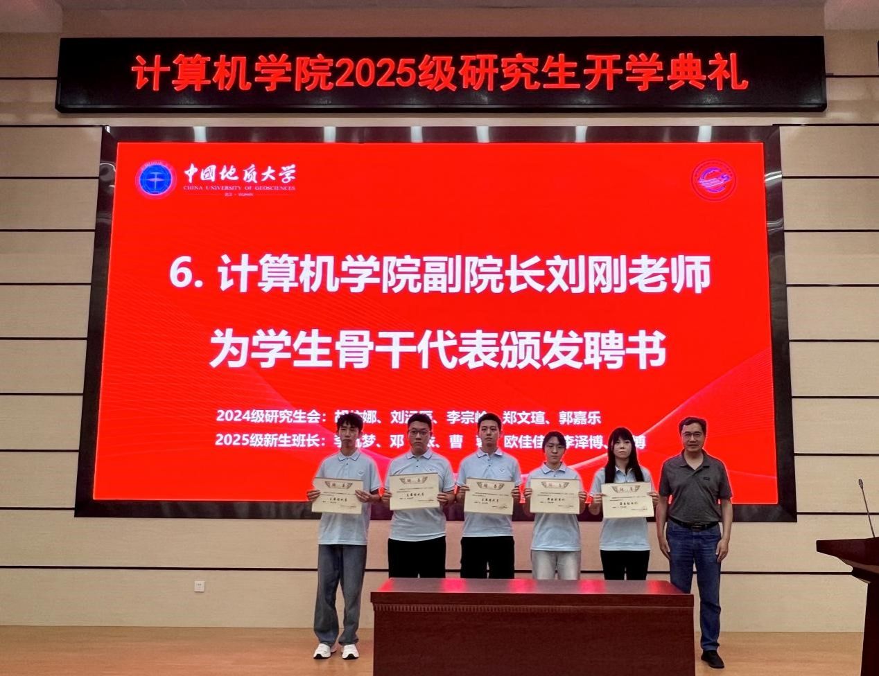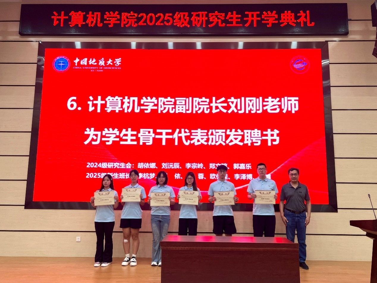 副院长刘刚教授为研究生骨干代表及2025级新生班长颁发聘书。