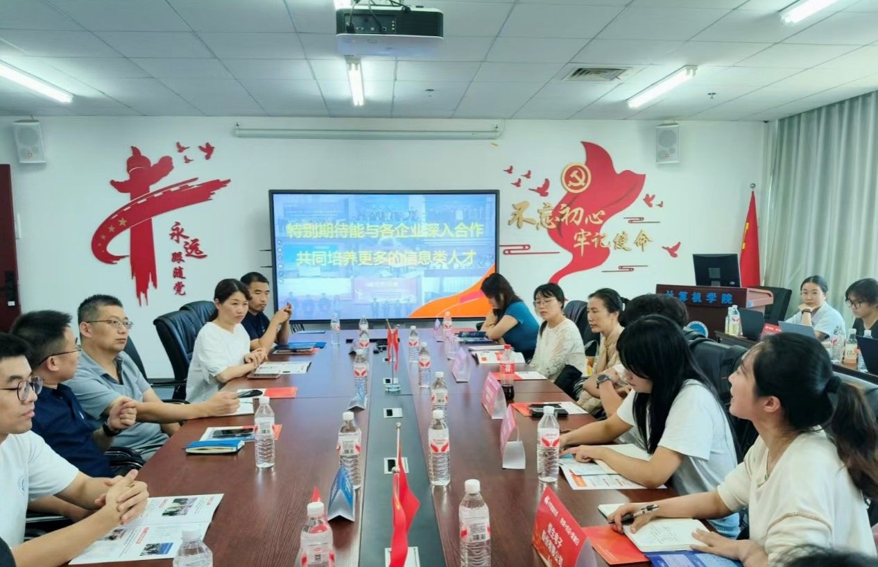 活动当日,学院在309会议室召开院企合作洽谈会。党委副书记林小艳,计算机科学与技术系主任熊慕舟,数据科学与大数据技术系主任阎继宁,软件工程系主任李圣文,2026届本科毕业生辅导员王太茂,研究生辅导员丁鑫磊与13家企业招聘主管共同参会。