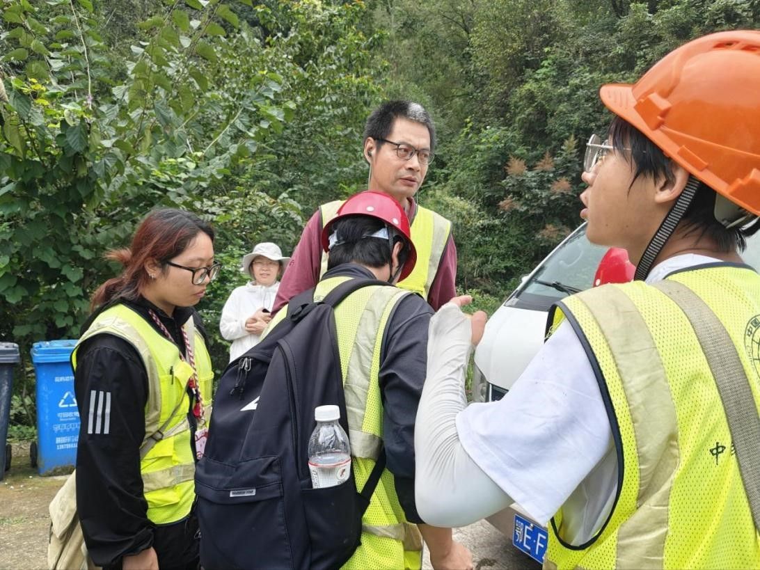 9月19日,雾河填图第三天,路线从雾河到红水坪,核心目标是寻找黄陵岩体花岗岩。沿途大雨阻断了同学们的探索之旅。好在有好心的老乡为同学们提供了避雨和休息的地方,雨停后,重新踏上路途。路途中可见陡山沱组岩层,陡山沱组一二段分界点,陡山沱组与南沱组分界点,连沱组与南沱组分界点。最后,功夫不负有心人,黄陵岩体花岗岩终于出现在同学们眼前!灰白色的岩石在阳光下泛着光,用放大镜一看,能清晰看到肉红色的长石和白色的石英颗粒。同学们围着花岗岩,测量,拍照,小心翼翼地敲下岩样,生怕错过这个“大发现”。往回走时,天已经放晴,阳光透过树叶洒在山路上,同学们虽然脚还是很酸,但心里满是喜悦,雾河的地质拼图终于变得完整了。