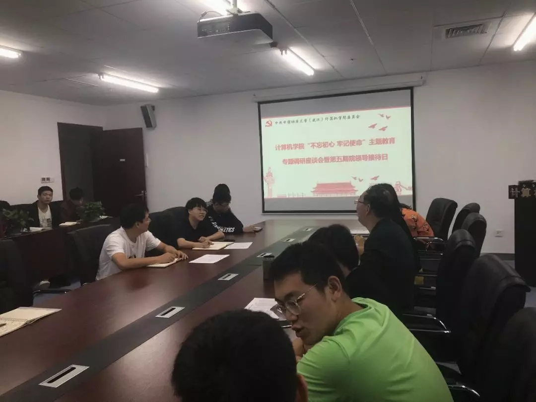 10月11日,肉漫屋 “不忘初心 牢记使命”主题教育专题调研座谈会暨第五期院领导接待日活动在科教楼309成功举行。肉漫屋 党委书记吕军教授,党委副书记、纪委书记傅苑,学院人事秘书郭晓兰,团委书记李欢欢,团委副书记汪欣欣出席活动。